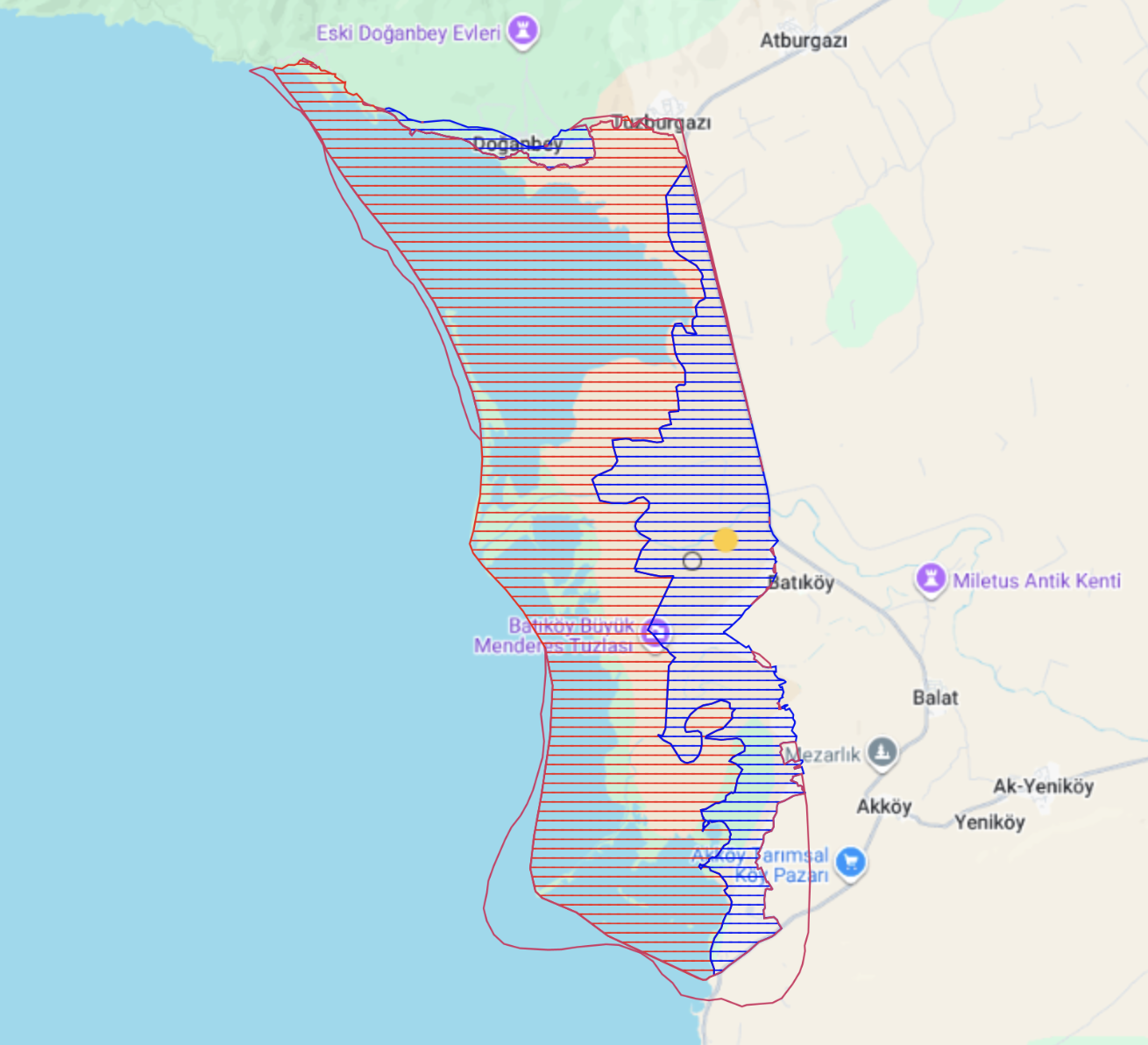 Sit Alanları Yönetim Sistemi – Büyük Menderes Deltası Koruma Alanları – Kırmızı Bölge: Kesin Korunacak Hassas Alan – Mavi Bölge: Nitelikli Doğal Koruma Alanı8