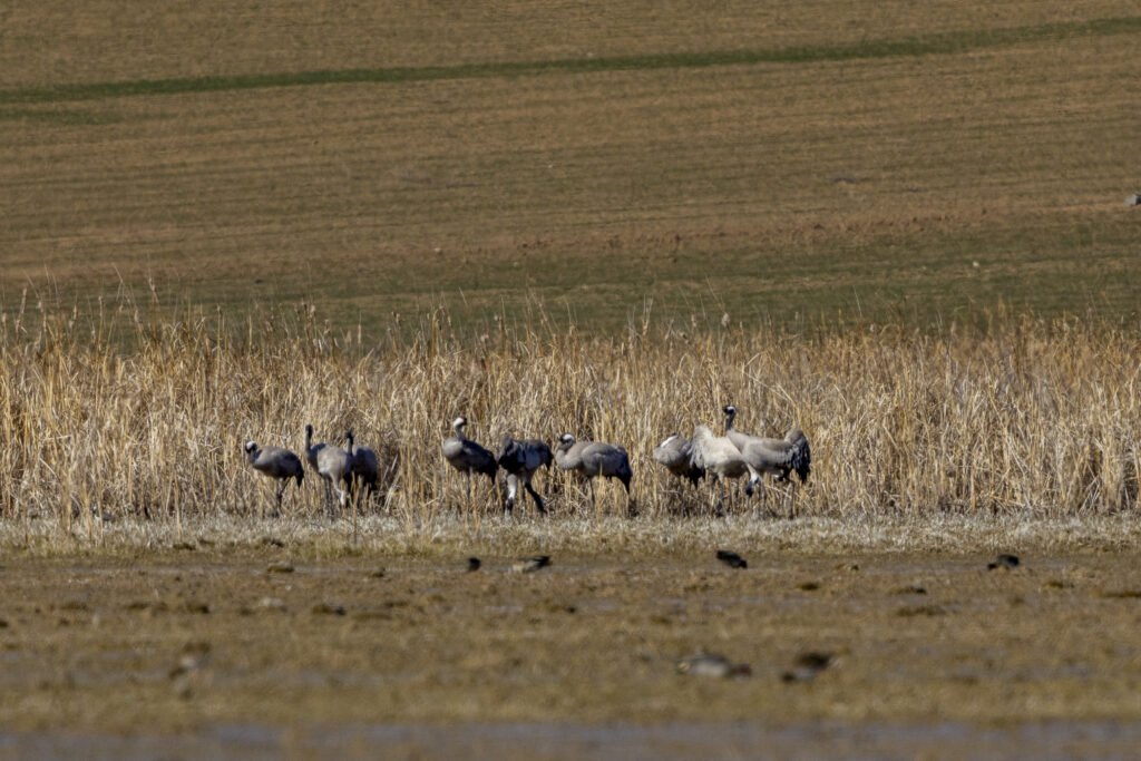 Kurtlarla karşılaşmamızdan 24 saat bile geçmeden bu kez on üç bireylik bir Turna sürüsünün dinlenme rotasının içinde bulduk kendimizi.